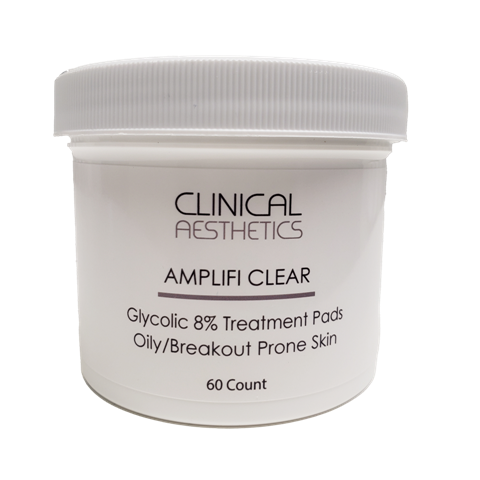Amplifi Clear Trio for acne control: Cleansing Gel 6 oz, 8% Glycolic Treatment Pads 60 counts, Blemish Correction Complex, 1.7 Oz